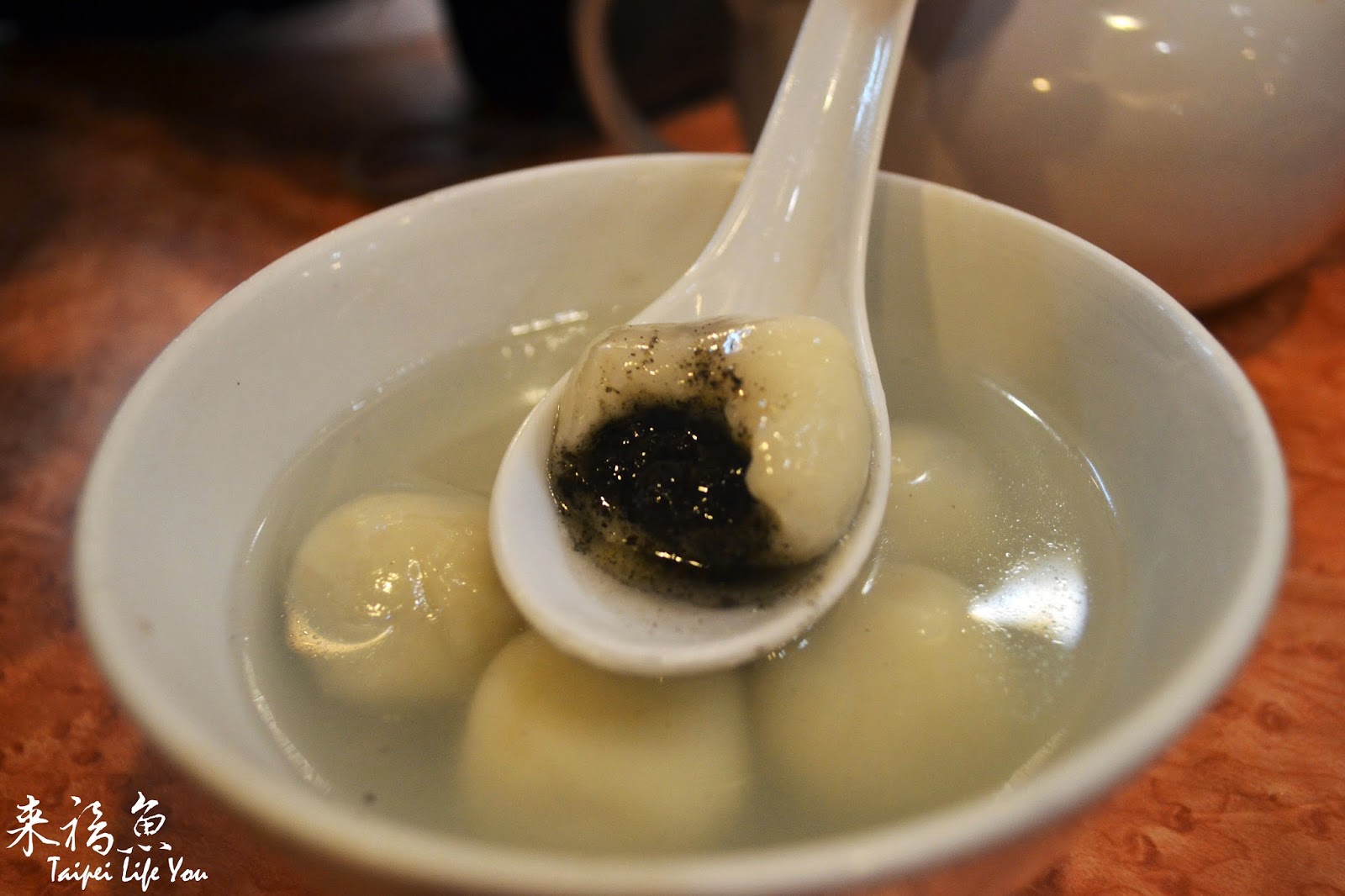 ↑八個小顆的芝麻湯圓,芝麻蠻香的,內餡還帶點淡淡的桂花香味,外皮微厚很Q,個人覺得還不錯,意猶未盡的很想再點一碗:P